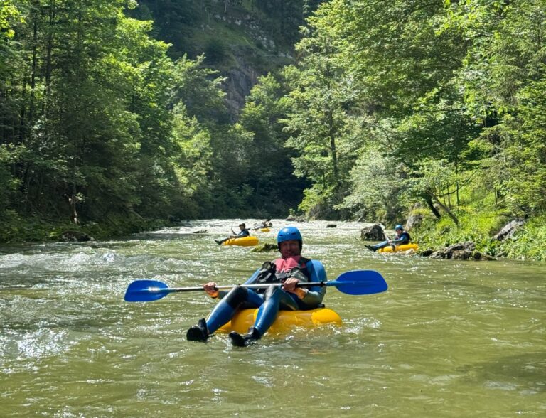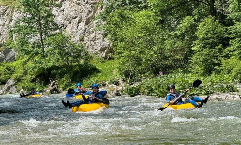Dies ist unsere souveränste und frei fließenste Fluss-Tour. Hier hast du die Möglichkeit, selbst in großen Reifen zu fahren und einige der herausfordernderen und schnellfließenden Abschnitte der Schwarza sowie möglicherweise auch einiger ihrer Nebenflüsse hinunterzudriften. Unsere erfahrenen Wildwasser-Guides sorgen während der Tour für deine Sicherheit. Auf dieser Tour durchquerst du atemberaubende Landschaften und unberührte Flussabschnitte in den Wiener Alpen. Du wirst auch die Möglichkeit haben, von Felsen in klare Süßwasserpools zu springen und während der Fahrt zu entspannen und zu schwimmen. Abenteuergefühl garantiert!